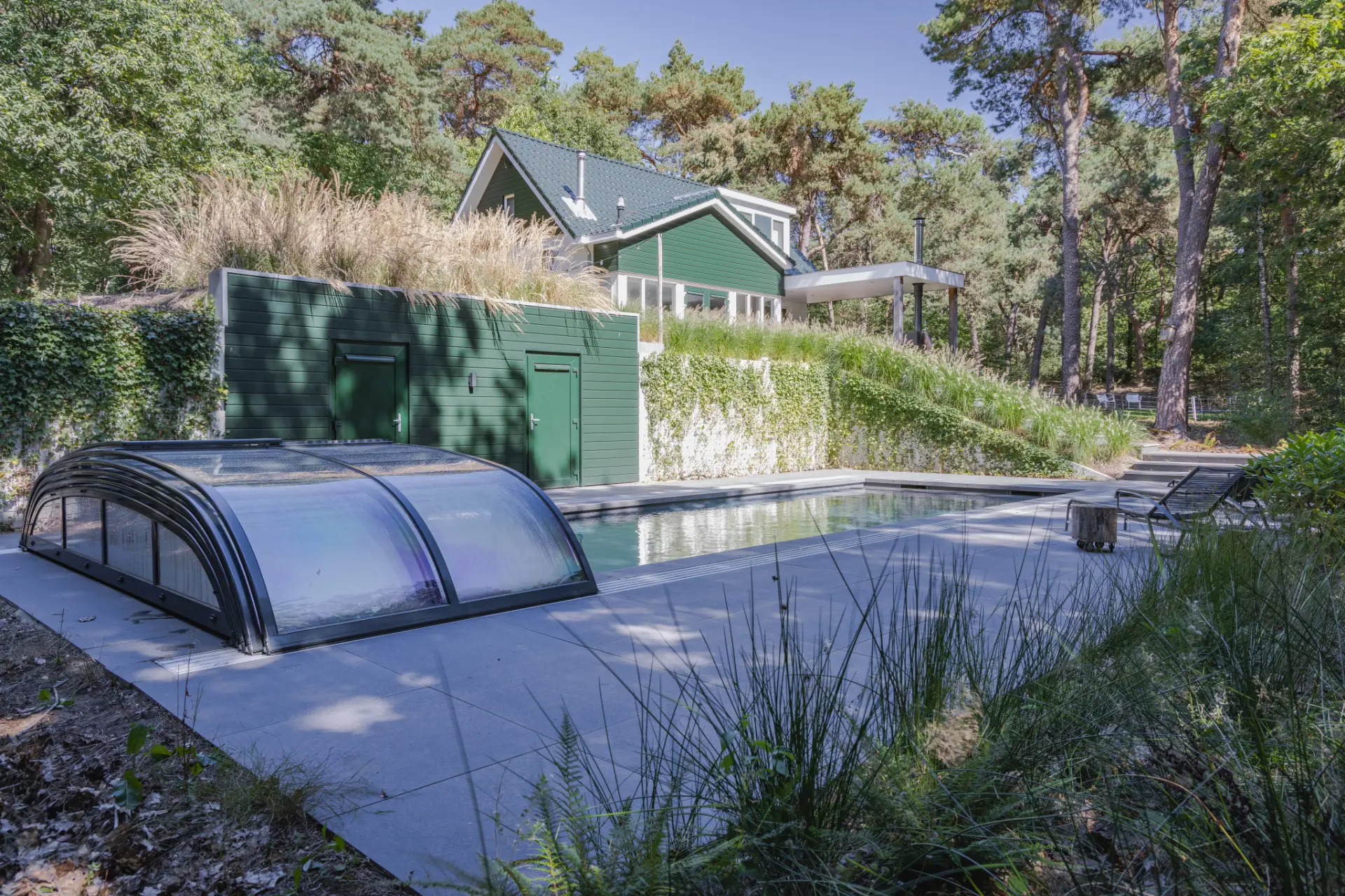 Dit prachtige bouwkundige zwembad legde zwembadbouwer Waterwel aan in Lunteren. In de realisatie van dit zwembadproject werd samengewerkt met Bouwbedrijf Hardeman, AA Hoveniers en Hardeman installatie.