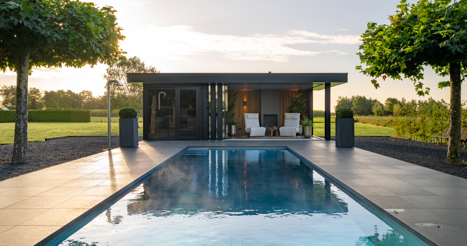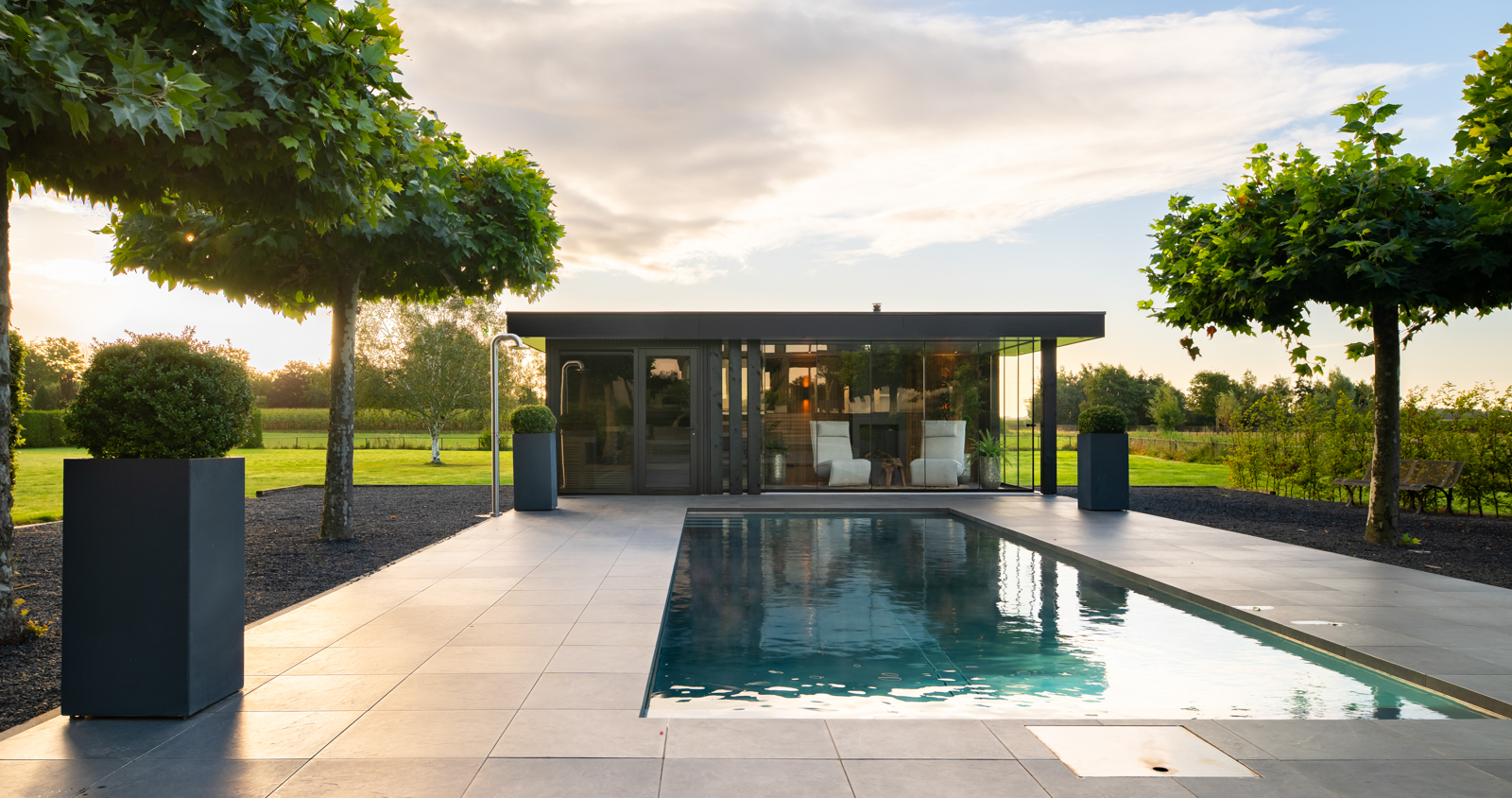 In Beerzeveld hebben we dit prachtige zwembad opgeleverd. Een RVS-zwembad is een luxe, moderne en duurzaam alternatief voor traditionele zwembaden zoals beton, polyester of linerbaden. Het materiaal heeft een glanzend, reflecterend oppervlak dat in de zon een bijna spiegelachtig effect geeft.