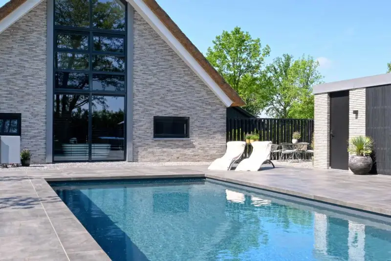 Het glanzende, moderne oppervlak draagt bij aan een elegante sfeer. De vormgeving past bij zowel moderne als klassieke tuinontwerpen. Het geeft tevens een prachtige blauwe kleur aan het zwembadwater.